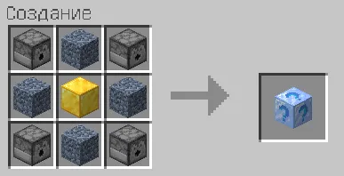 Создать его можно из замёрзшей земли (Ice earth), золотого блока и раздатчиков.