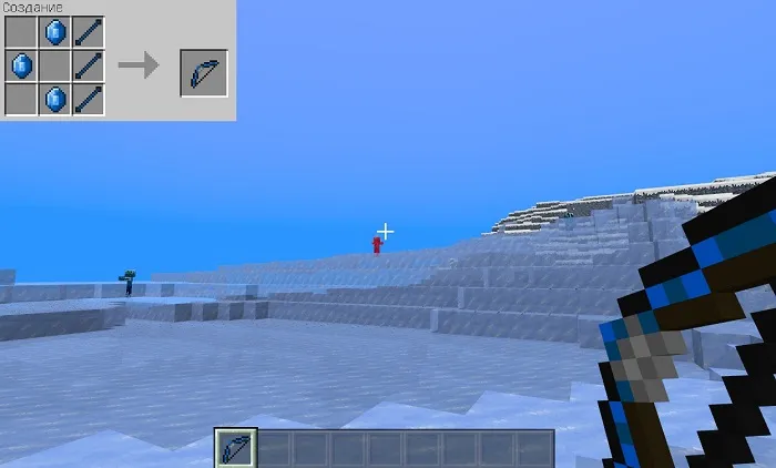 Вы можете создать Ледяной кристальный лук из ледяных кристаллов и ледяных кристальных палок!