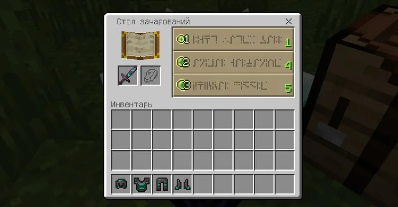 Вы также можете зачаровать броню и меч, используя для этого стол зачарований.