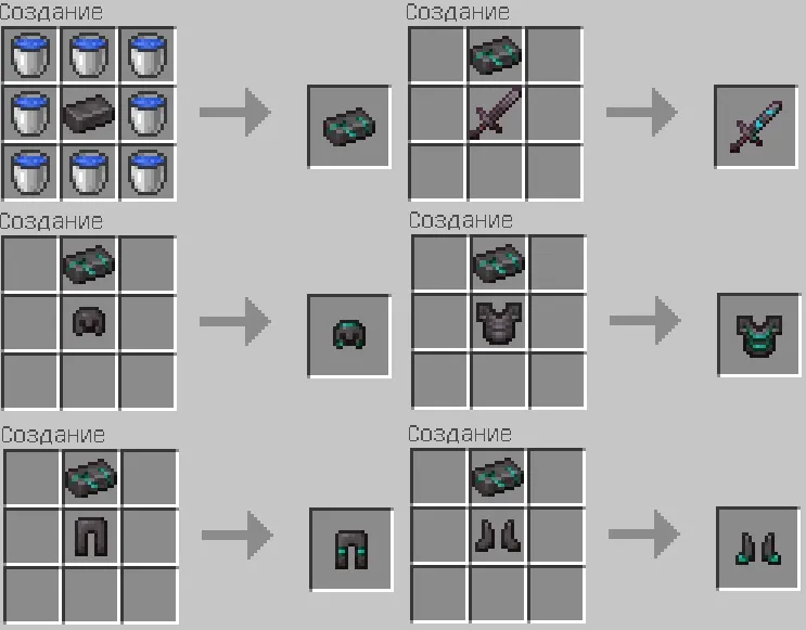 Для создания водных незеритовых элементов брони и меча вам понадобится водный незерит, скрафтить который можно в верстаке из восьми вёдер с водой и одного незеритового слитка.
