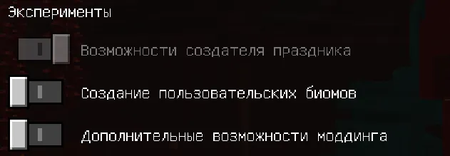 Обязательно активируйте в мире экспериментальную функцию для корректной работы мода.