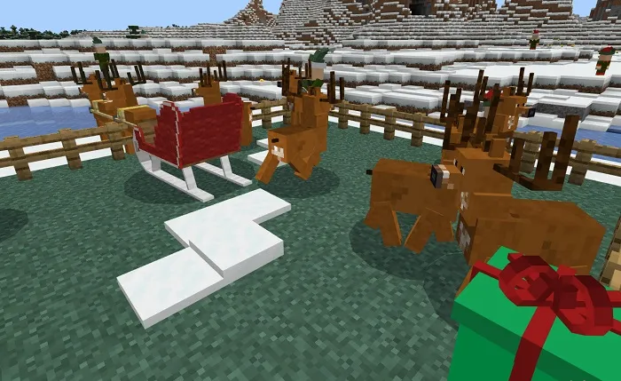 В снежных биомах вы сможете найти чёрные подарки, разрушайте их, чтобы получить шанс создания дома Санты-Клауса.