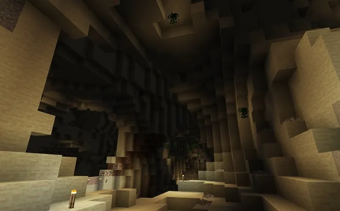 Вы можете найти эти пещеры в подземельях пустынных биомов. В этих пещерах есть новый вид камня — песчаный камень. Также в этих пещерах будут генерироваться как ванильные руды, так и новые, а ещё новые виды камней, вроде песчаной угольной руды и сандезит!