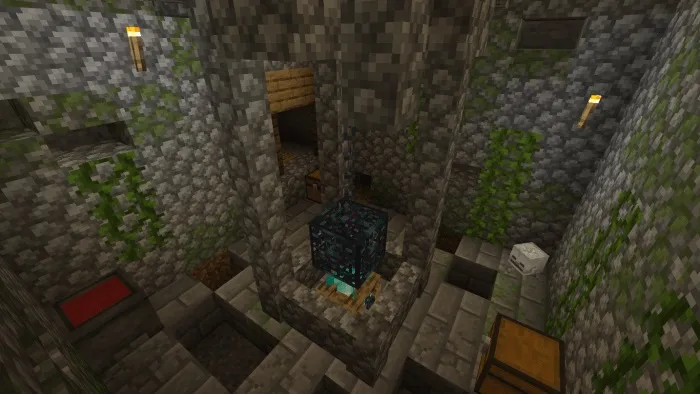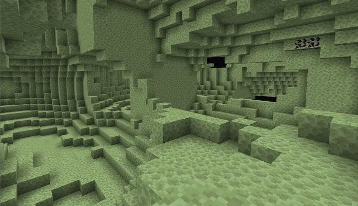 В моховых пещерах вы можете найти мини-подземелье, руды и хижину шахтёров. Внутри этой структуры вы увидите, насколько она идеальна в качестве домашней и горнодобывающей станции.