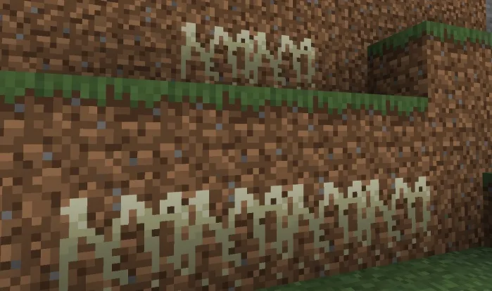 Корни будут генерироваться под блоками земли и их можно использовать для создания саженцев, лечебных зелий и костной муки.