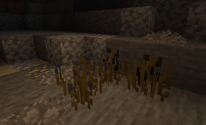 Каменные растения в пещере? Речь про кристаллы! Они случайным образом появляются в пещерах и освещают эти темные глубины. Они служат одной цели - обеспечивать свет. Синий кристалл был сделан 2d, чтобы было похоже на будущую версию 1,17. Как было сказано ранее, это дополнение не является концепцией 1.17.