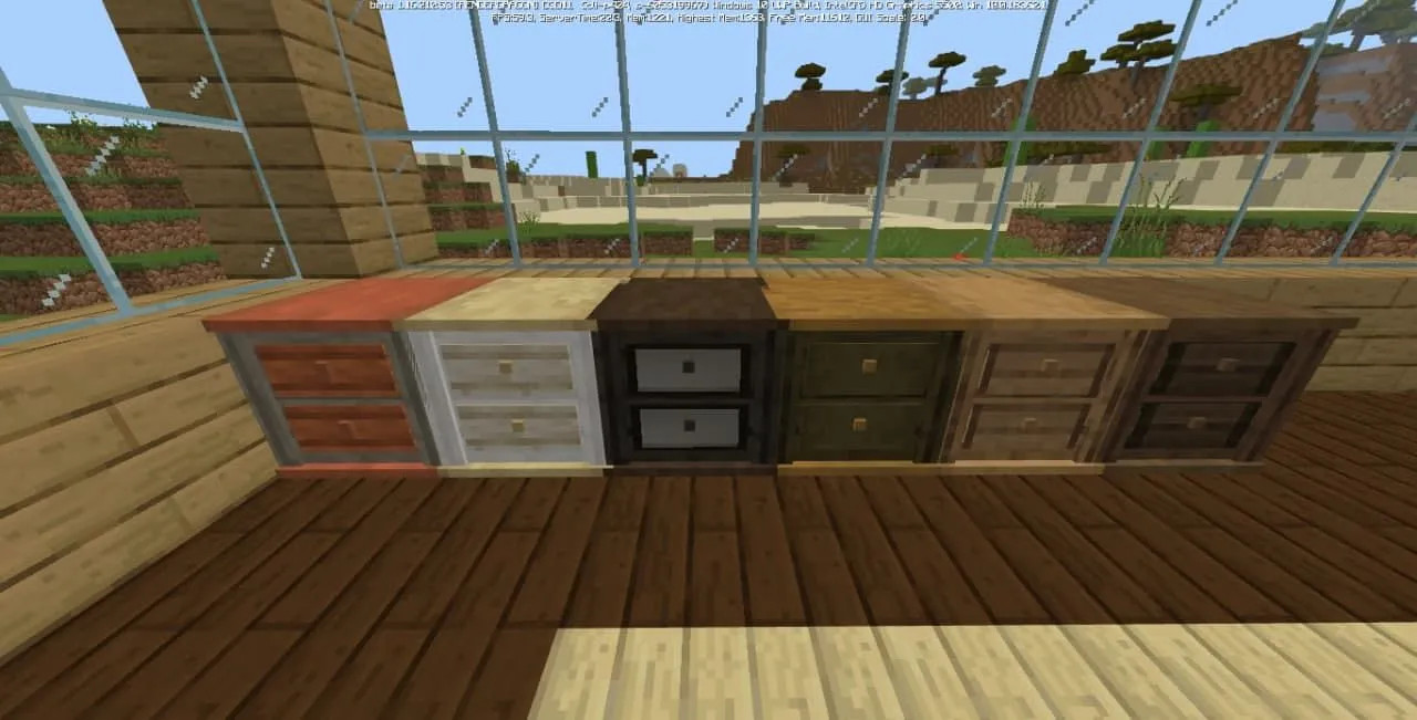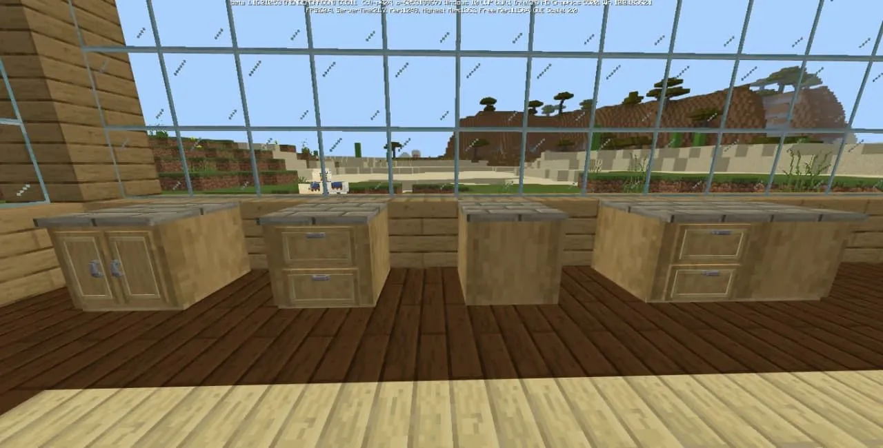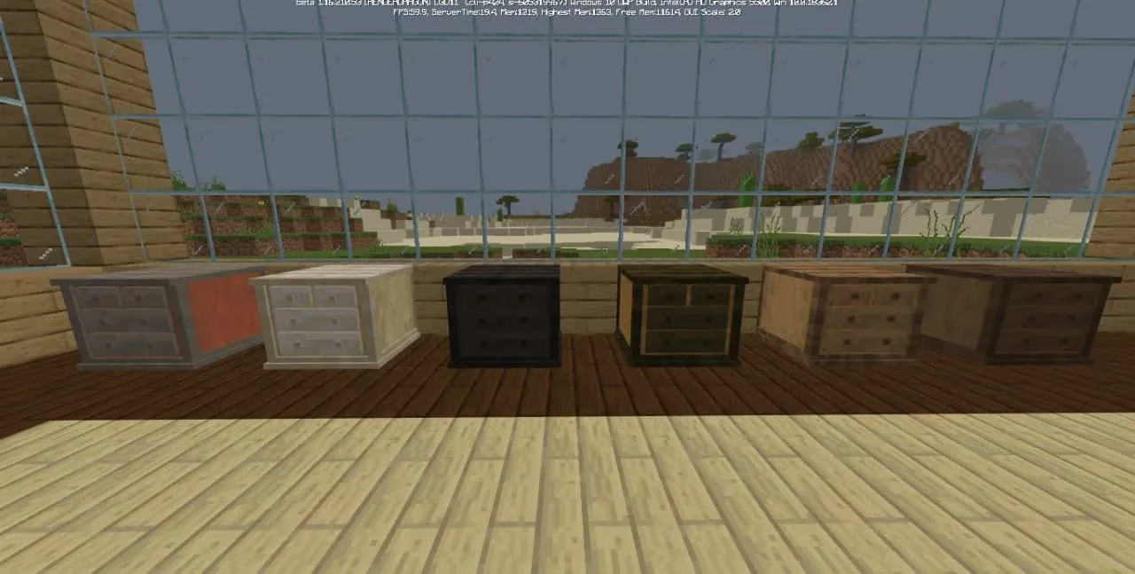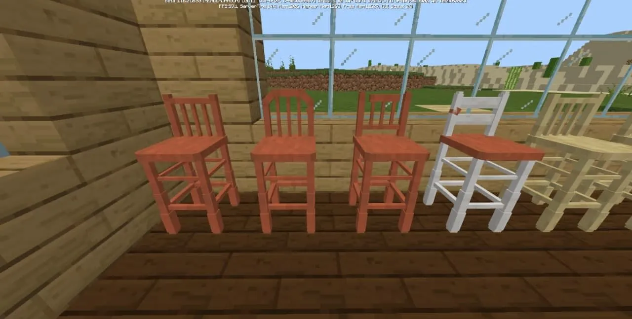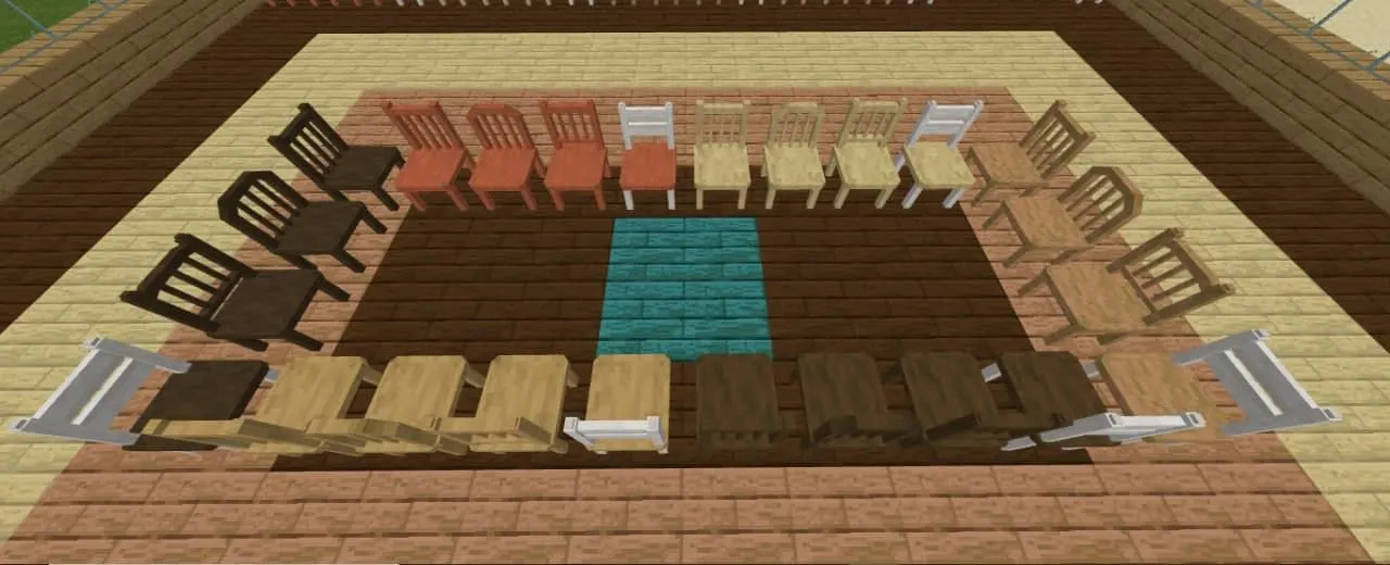 Пакет аддона включает в себя стулья, барные стулья, кухонные шкафы, комоды, ящики и многое другое. И всю эту мебель можно сделать из различных пород дерева, которые вам понравятся и подойдут больше всего! С новыми блоками нельзя взаимодействовать, вся новая мебель является лишь эстетическим украшением.