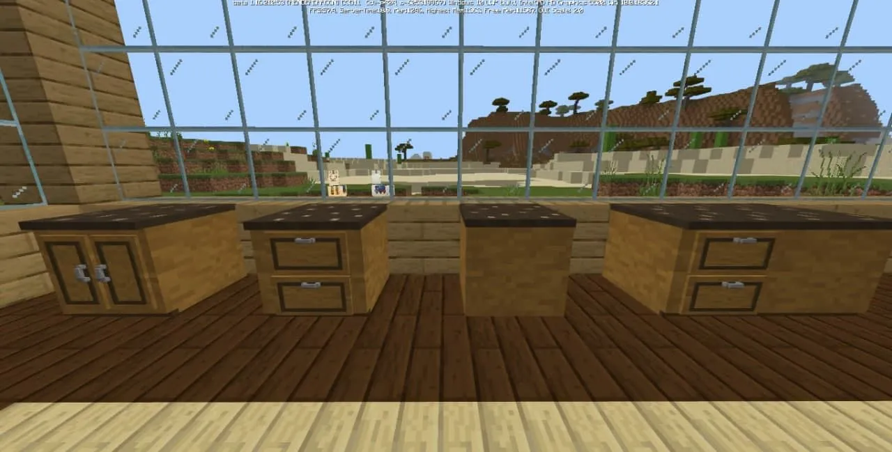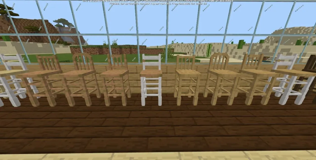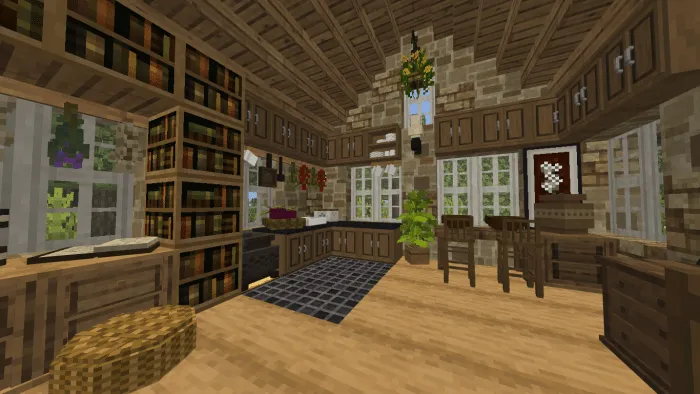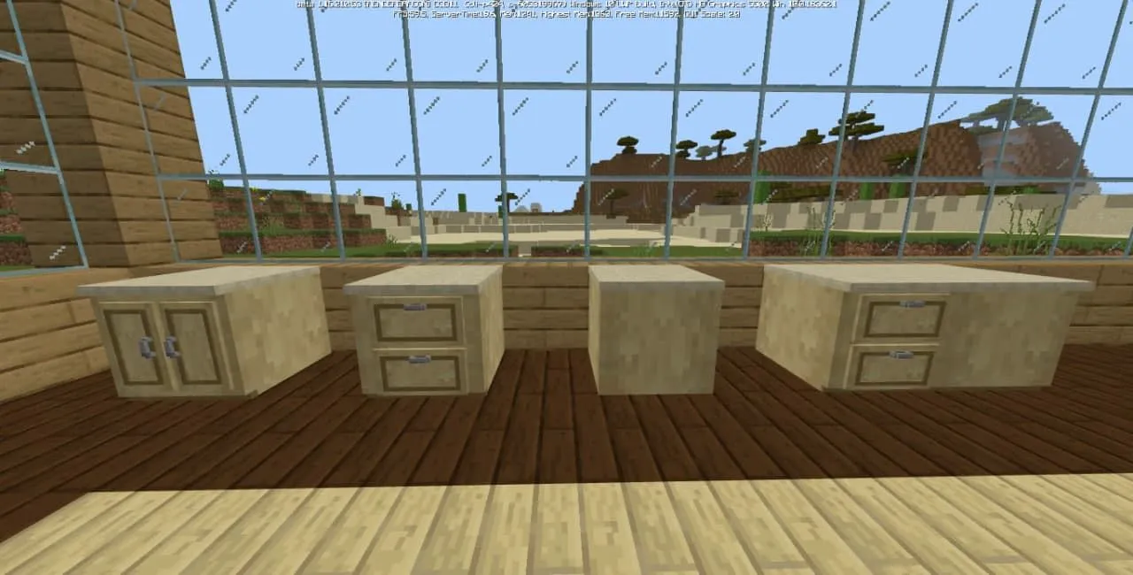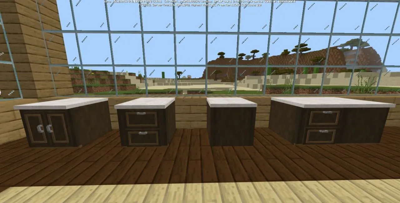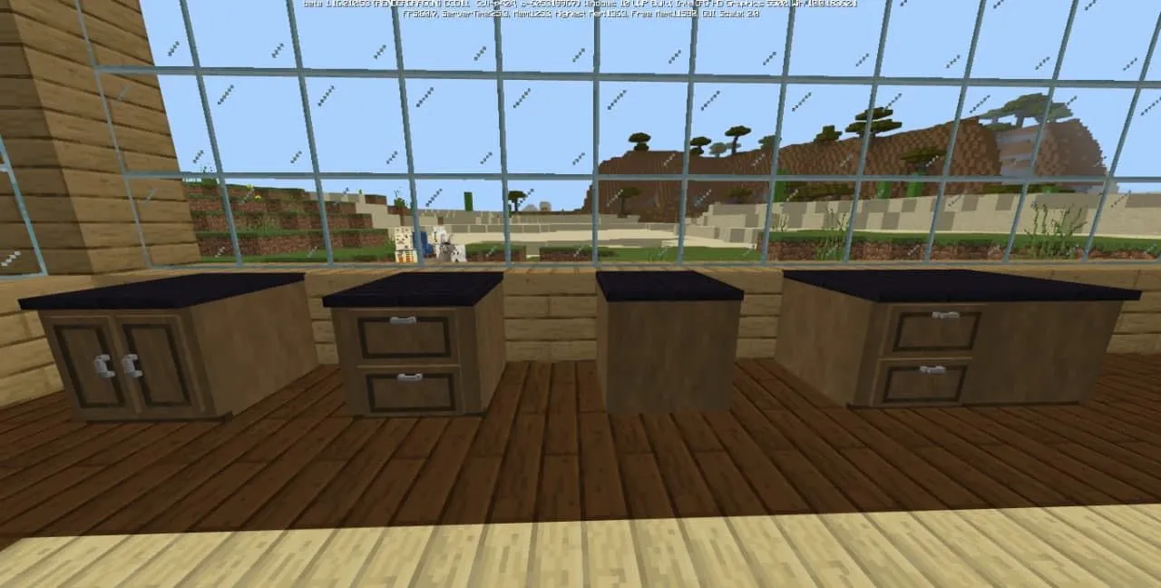 Пакет аддона включает в себя стулья, барные стулья, кухонные шкафы, комоды, ящики и многое другое. И всю эту мебель можно сделать из различных пород дерева, которые вам понравятся и подойдут больше всего! С новыми блоками нельзя взаимодействовать, вся новая мебель является лишь эстетическим украшением.