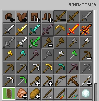 Все предметы (кроме блоков) также доступны в инвентаре творческого режима.