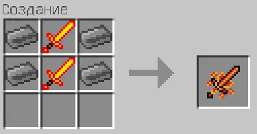 Два таких огненных меча и несколько стальных слитков можно объединить в Огненный меч II.
