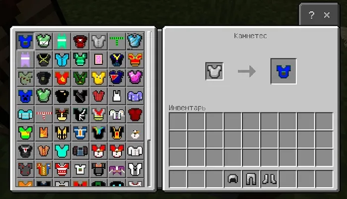 Для создания одежды вам потребуются элементы железной брони и камнетёс.