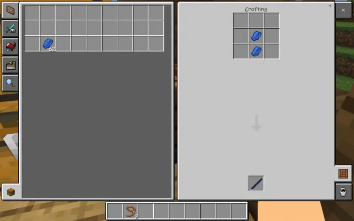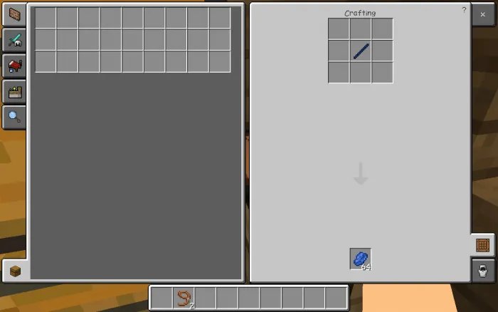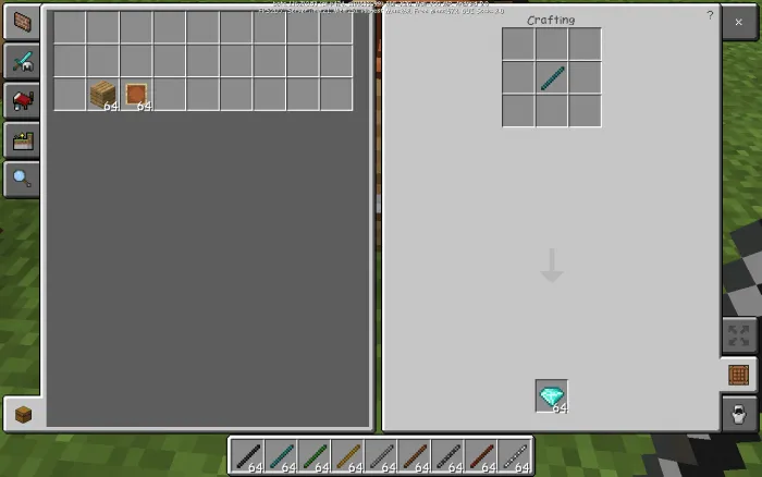 После этого вы создаете палку определенного типа и помещаете ее обратно в верстак. Получается, что затрачено 2 алмаза, а получено 64!