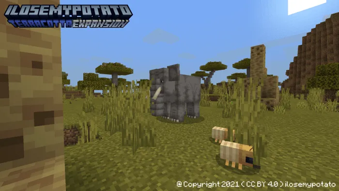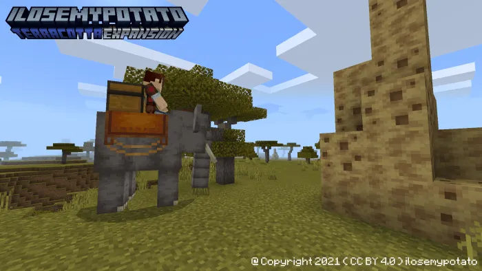 Слоны - нейтральные мобы, любят есть овощи, фрукты, а также гнезда термитов. Он будет убегать от пчел, не забудьте посадить пчел в клетку. Вы можете использовать седло, чтобы оседлать их, и сундук, чтобы хранить свои вещи. Было бы здорово отправиться в приключение на слоне, правда? С них будет выпадать кожа (0-6).