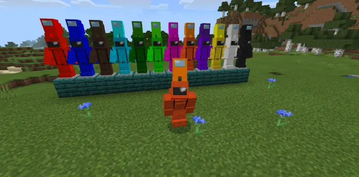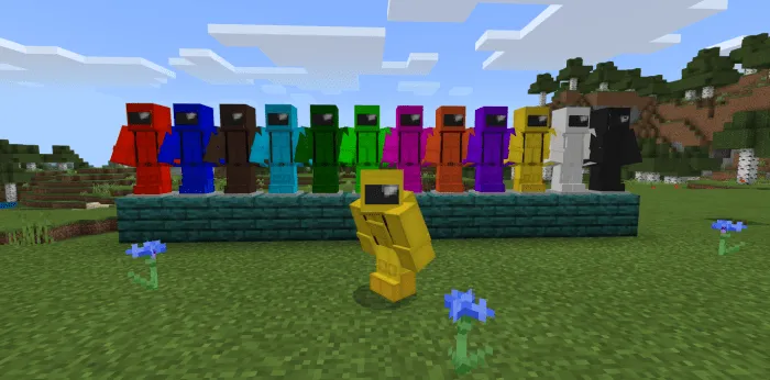 Мод «Among Us Suits» добавляет в Майнкрафт ПЕ полноценные костюмы членов экипажа из игры «Among Us».