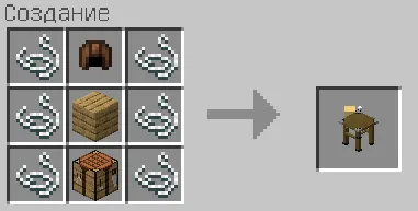 Мод также добавляет новый блок в игру, которые позволит Вам улучшать шляпы, наделяя их новыми свойствами. Для начала Вам нужно создать Стол для пошива (Tailoring Table).