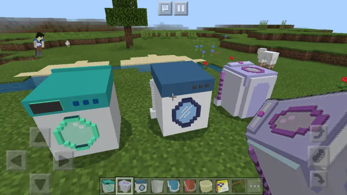 Наслаждайтесь днями уборки в мирах Майнкрафт ПЕ вместо с модом «Laundry Set», который добавляет в игру стиральные машины, пылесосы и многое другое!