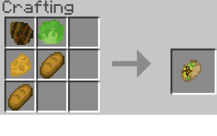 - Дроп - дубовые бревна, латук (новая еда, используется в создании Тако (см. ниже));