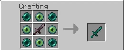 Меч работает аналогично другим, но при использовании правой кнопки мыши (долгий тап на смартфоне) Вы будете телепортированы на 7 блоков вперёд, при этом будет проигран звук шума телепортации Эндермена с частицами.