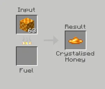 Кристаллизированный мёд - специальный предмет, который понадобится для крафта инструментов. Получается путем плавки блока меда на костре: