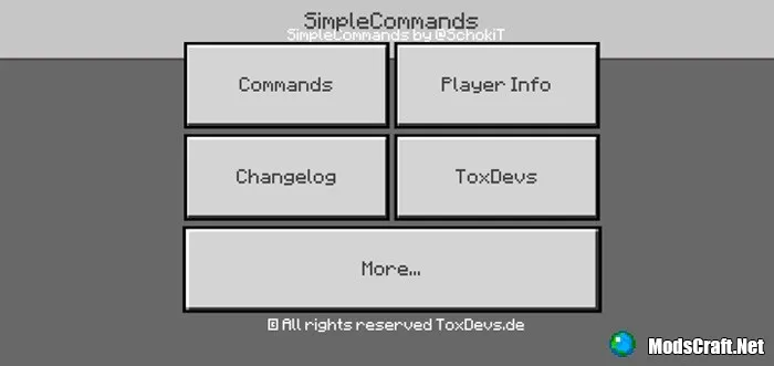 Модификация SimpleCommandsButtons добавит в Minecraft Pocket Edition простой пользовательский интерфейс, который даст вам возможность использовать различные команды с помощью кнопок. Особенность мода в том, что он довольно простой и имеет самые необходимые команды.