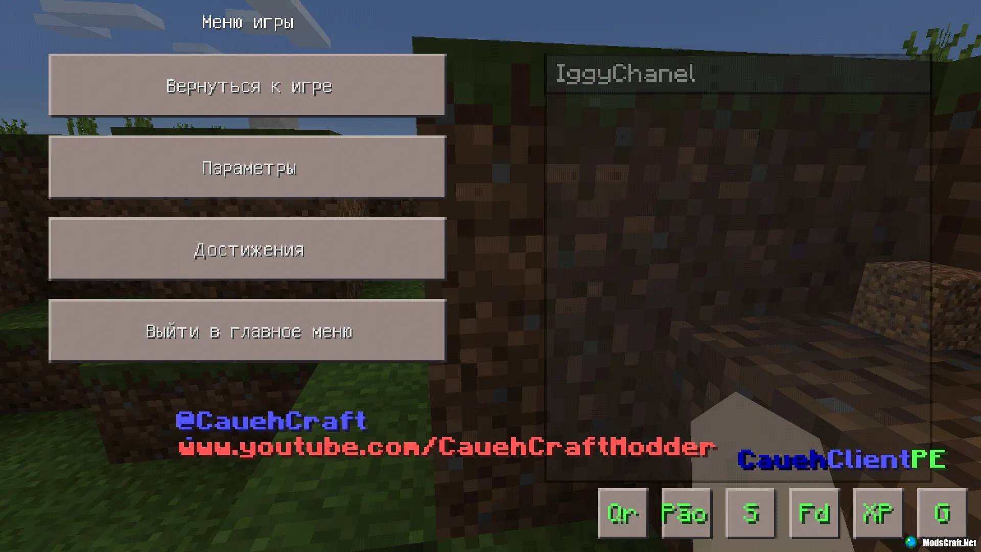 Аддон CauehClientPE добавит в Minecraft Pocket Edition несколько полезных функций. Благодаря данному аддону вы сможете увеличить свою скорость передвижения, ломать блоки в один удар, получать опыт в один клик и многое другое!