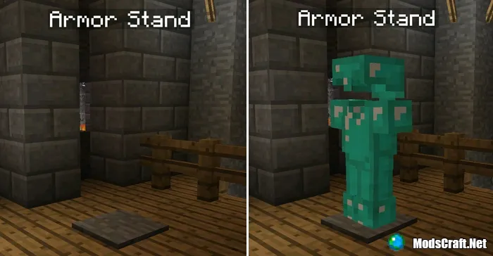 Модификация Armor Stand добавит в Minecraft Pocket Edition специальную стойку для брони. Стойка уже есть в версии Minecraft для PC, но её всё ещё нет в мобильной версии. Так что данный мод частично реализует эту возможность.
