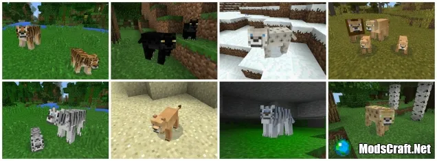 Леопарды (id спауна: 2826) являются одними из самых больших животных семейства кошачьих и являются одними из самых быстрых. Есть три типа леопардов: снежный барс, пантера и обычный леопард. Они могут быть найдены в джунглях и в лесах. Снежного барса можно найти в снежных горах.