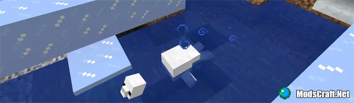 Снежный тюлень (id спауна: 2840) обычно встречается в снежных биомах, где есть вода, ведь они любят плавать. Тюлени очень быстрые в воде.