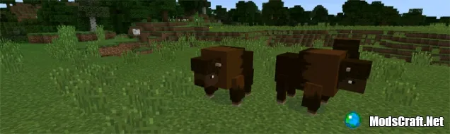 Зубры (id спауна: 2817) имеют большое тело, которое покрыто густым мехом. Это позволяет им жить в холодных местах, но иногда они также появляются на саванне