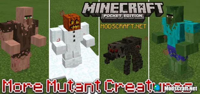 Модификация More Mutant Creatures добавит в Minecraft Pocket Edition ужасных монстров, которые мутировали в настоящих мутантов из обычных мобов игры Майнкрафт. Всего мод добавит 22 мутанта, каждый из которых будет иметь свой размер и будет сильнее в два раза! Все новые мобы будут появляться случайны образом по всему миру, но найти их будет довольно сложно. Это действительно интересный мод для игры. К модификации также приложена специальна карта!