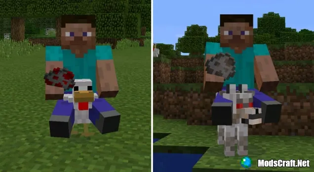 Мод Rideable Mobs позволит вам садиться на мобов в Minecraft Pocket Edition! Например, вы сможете забраться на плечи Эндермена и телепортироваться из одного места в другое. Вы даже сможете оседлать более мелких животных, как летучих мышей и кур. Это простой, но очень весёлый мод!
