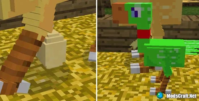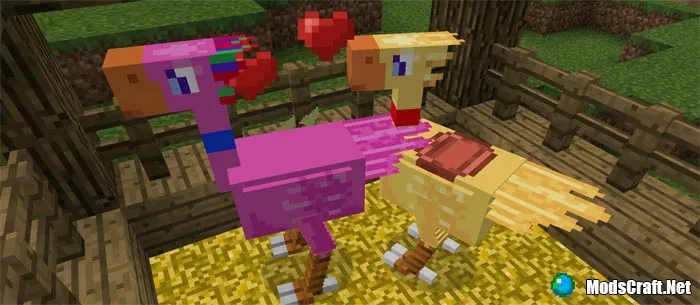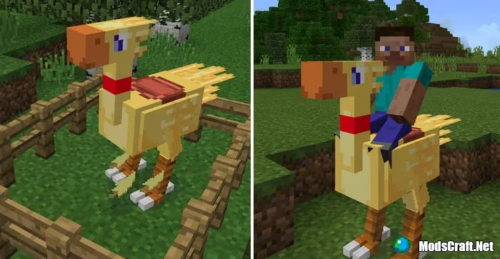 Модификация ChocoCraft PE добавит в Minecraft Pocket Edition вымышленных существ Чокобо из вселенной Final Fantasy. Чокобо - это большая птица, которую вы сможете приручить и использовать для верховой езды. Это очень забавное существо и оно похоже чем-то на страуса. Всего с этим модом в игре появится 9 видов Чокобо, которых естественно вы сможете приручить.