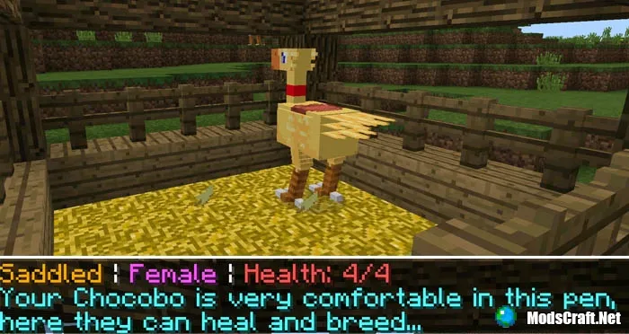 Постройте загон для Чокобо, чтобы дать ему отдохнуть и восстановить здоровье. Для загона нужна крыша и пол из соломы (Straw).