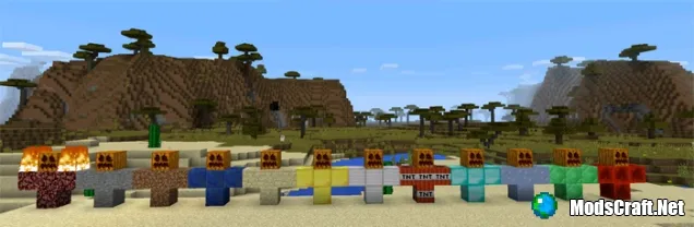 С модификацией Golem World PE в мире Minecraft Pocket Edition появится ещё больше големов, которые помогут вам своей защитой против монстров.