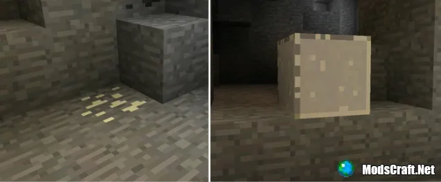 Мод Ore+ добавит в Minecraft Pocket Edition новые руды, которые будут генерироваться по всему игровому миру. Всего с этим модом появится четыре новые руды. Все руды будут генерировать случайным образом, в пещерах и подземельях, аналогично тому, где можно найти обычные руды.