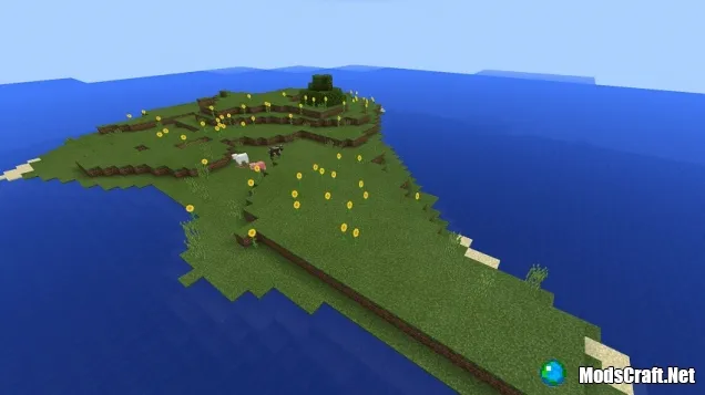 Вот пример острова, который сгенерировался недалеко от места моего спауна. Воспользуйтесь сидом 2075202858, чтобы создать мир с этим островом.