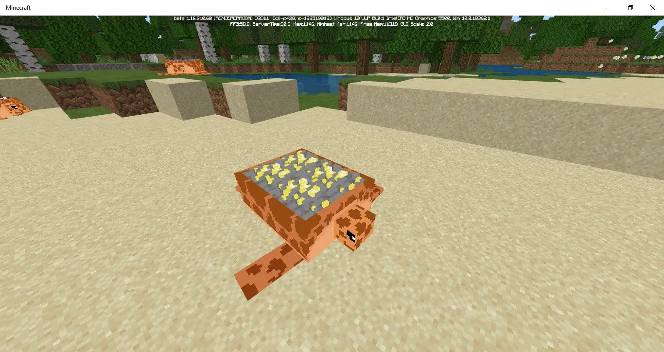 Аддон добавляет в игру 10 новых черепах с рудами на их панцире, которые добываются с помощью любого типа кирки.