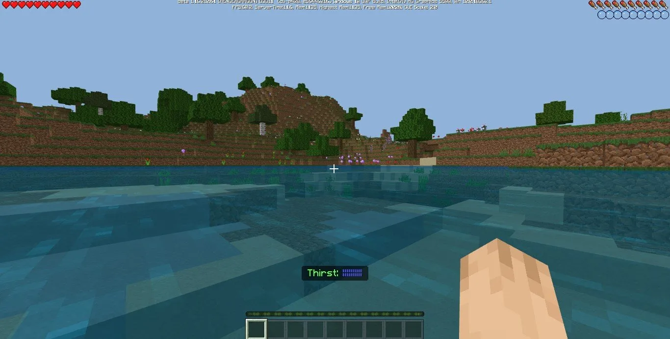 После установки мода в игре появится индикатор. Каждые 30 секунд индикатор будет уменьшаться. Единственный способ не умереть от жажды - это прыгнуть в воду. Жажда уменьшается ещё быстрее, если вы стоите на песке.