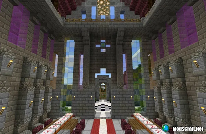 Чтобы показать вам, как это выглядет со зданиями, разработчик скачал карту с замком и использовал кучу стекол для его украшения.