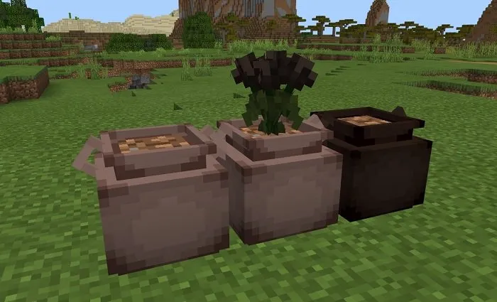Вам хотелось бы, чтобы в Майнкрафт появилась возможность заниматься гончарным делом? Теперь вы сможете использовать глину и новый гончарный круг для создания горшков. Экспериментируйте, ведь доступно более 4000 комбинаций, 17 различных цветов для окрашивания (включая неокрашенные версии), 3 размера, 5 видов керамики и более 10 растений для украшения!