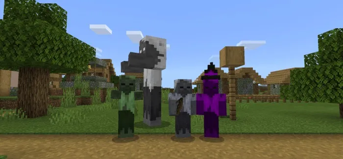 - Зомби-заклинатель (Zombie Evocator): атакует эффектом слепоты, может приручать волков, делая их злыми, а также способен призывать маленьких зомби и Зомби-телепортатора
