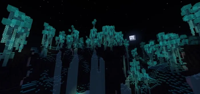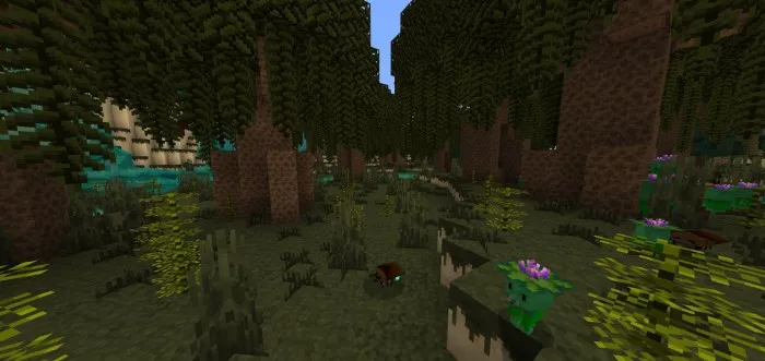 Мистическая местность, которая населена странными существами и в которой генерируются ещё более странные деревья. Эти светящиеся ростки плесени светятся голубым светом и создают густой туман в течение всего дня. В этом биоме вы найдёте красивые водопады и опасные скалы!