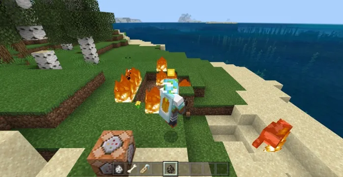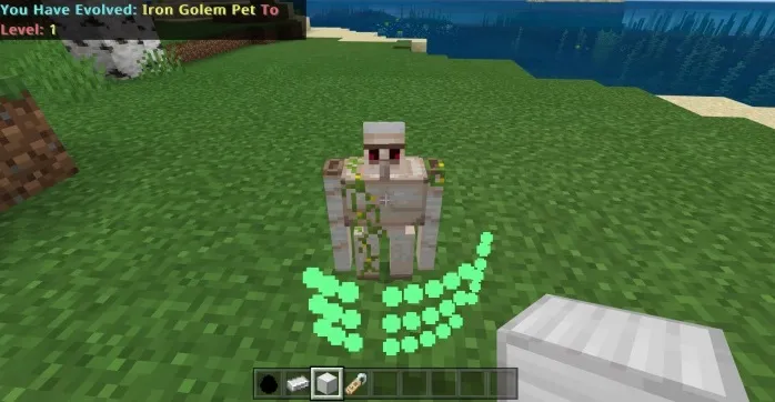 Используйте железные блоки для прокачки питомца. Каждое улучшение будет увеличивать скорость передвижения и количество урона.