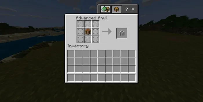 Рецепт наковальни представлен на скриншоте ниже и для ее создания можно использовать обычный верстак.