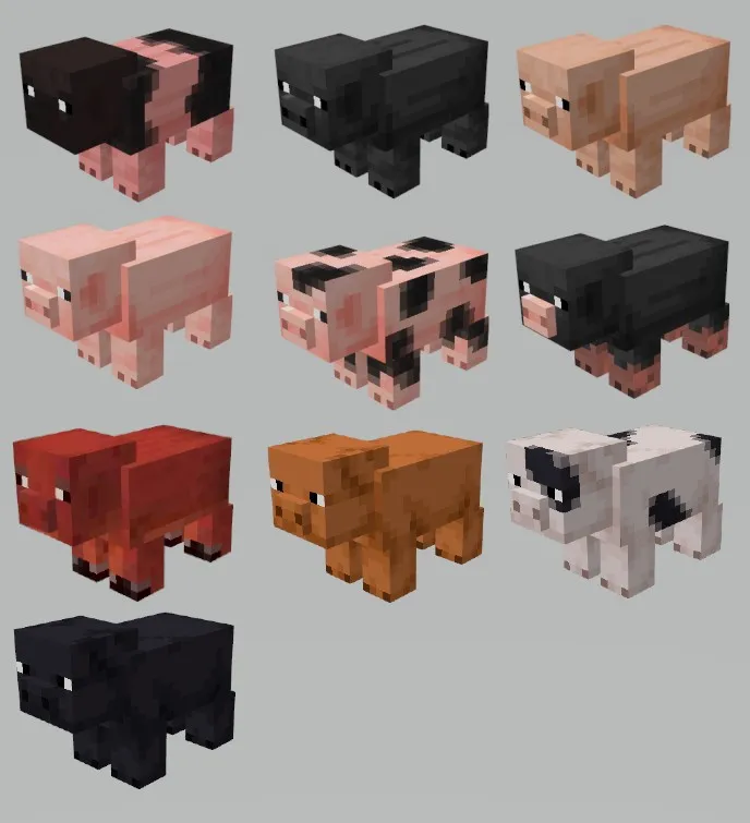 Наверняка многие из Вас видели большое количество разновидностей коров и свиней, но в Minecraft их по одному виду. Теперь это будет исправлено вместе с модом More Mob Variants, который добавит множество вариантов для стандартных животных.