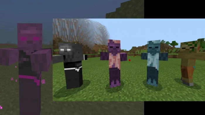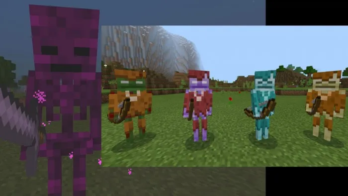 У каждого моба есть специальные эффекты: мобы-иссушители иссушают вас, мобы из джунглей накладывают яд, грибные мобы дают регенерацию, мобы пустыни и незера дают слабость, а снежные мобы накладывают медлительность!