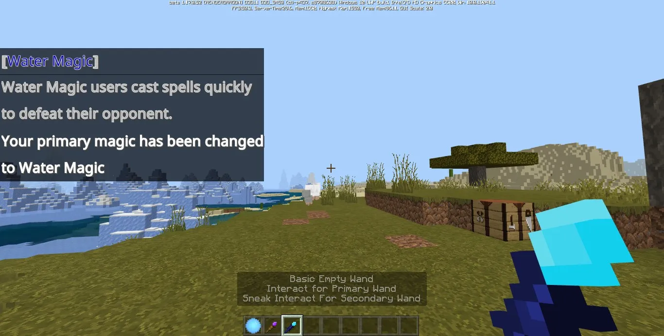 На примере выше была выбрана Магия Воды (позволяет стрелять водными шарами).