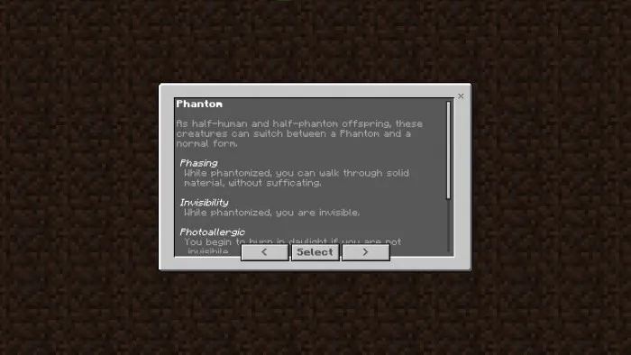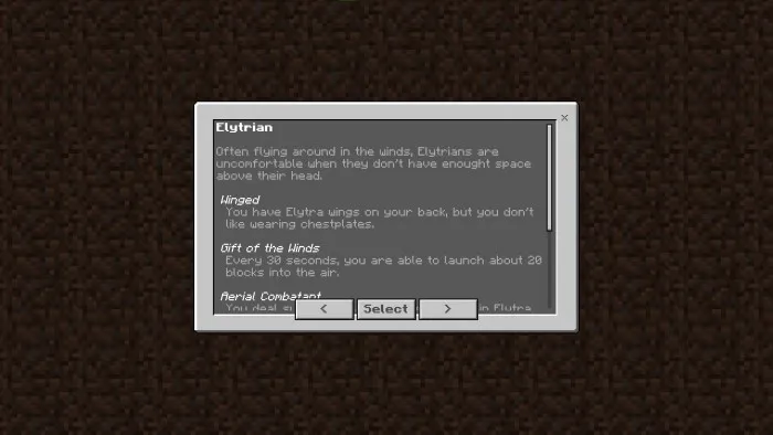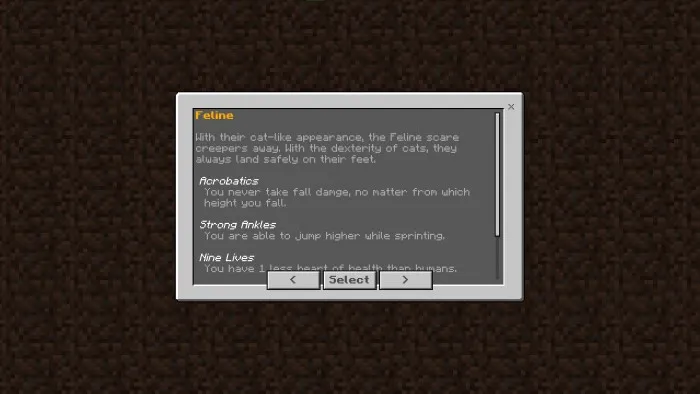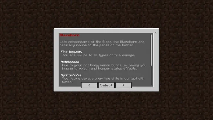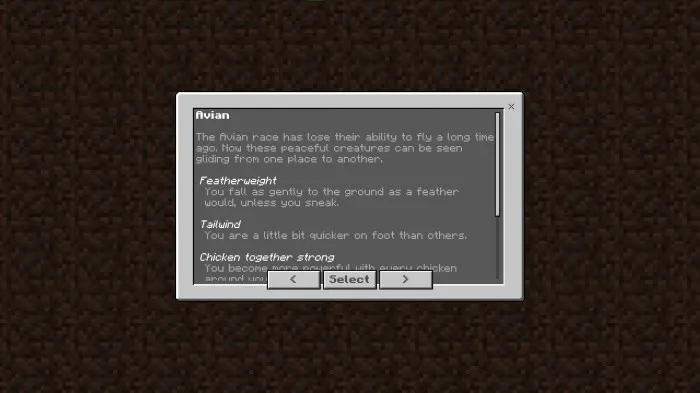При запуске нового мира Майнкрафт с активированным дополнением «Origins» вас встретит диалоговое окно с выбором и описанием рас: