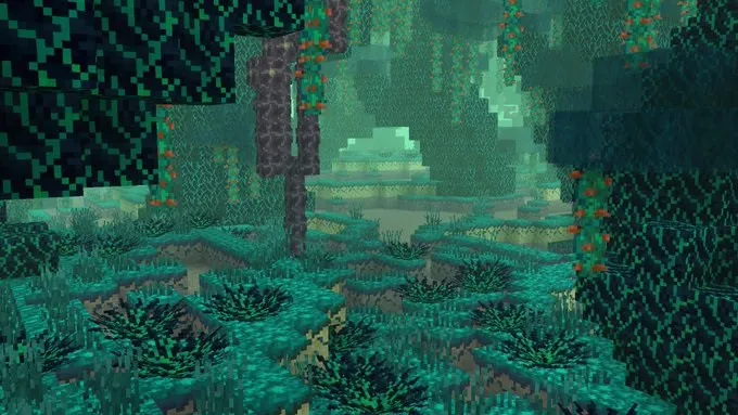 Это странное фиолетовое место, покрытое особым веществом — хориллием. Здесь растут гигантские хориллиевые грибы и ильменная лоза. Этот биом — отличное место, чтобы найти грибосветы.