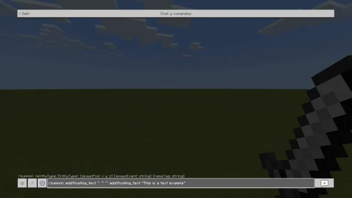 Вы также можете вызвать его с помощью следующей команды: /summon add: FLOAT_TEXT ~ ~ ~ add: FLOAT_TEXT «Ваш текст без кавычек».